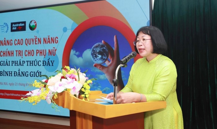 Phát biểu đề dẫn hội thảo, TS Dương Kim Anh, Phó Giám đốc Học viện Phụ nữ Việt Nam, cho biết: Hội thảo khoa học với chủ đề "Nâng cao quyền năng chính trị cho phụ nữ - Giải pháp thúc đẩy bình đẳng giới" nhằm tạo diễn đàn khoa học thảo luận các vấn đề liên quan đến nâng cao quyền năng chính trị cho phụ nữ, thúc đẩy bình đẳng giới và phát triển bền vững; tăng cường trao đổi học thuật giữa các giảng viên, nghiên cứu viên Học viện Phụ nữ Việt Nam với các nhà khoa học trên mọi miền đất nước.