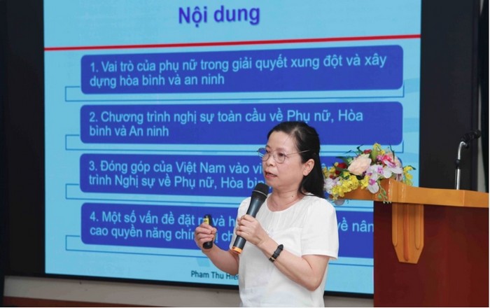 TS Dương Kim Anh, Phó Giám đốc Học viện Phụ nữ Việt Nam, phát biểu đề dẫn hội thảo
