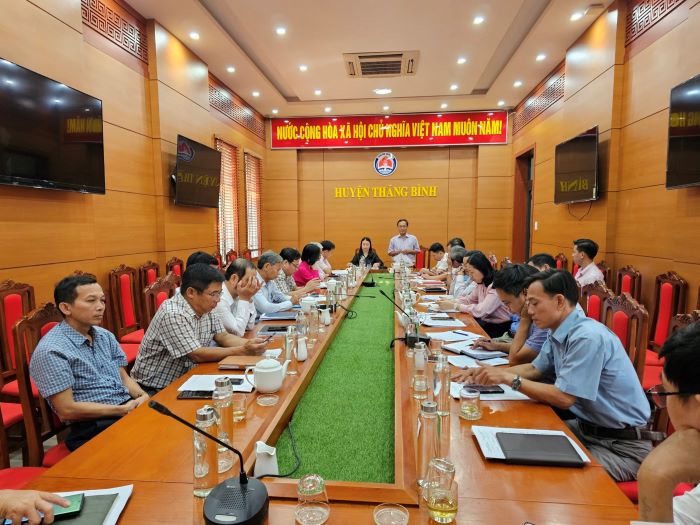 Bà Đặng Thị Lệ Thủy, Chủ tịch Hội LHPN tỉnh Quảng Nam, Thành viên Ban đại diện HĐQT Ngân hàng CSXH tỉnh làm việc với Ban đại diện HĐQT NHCSXH huyện Thăng Bình