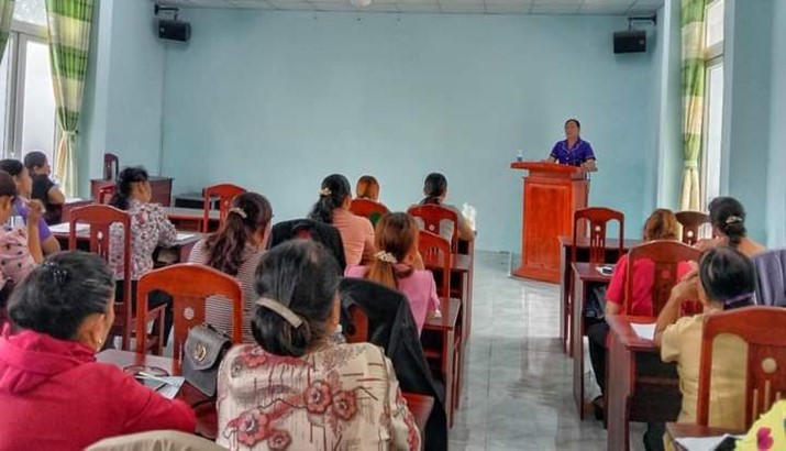 Phó Chủ tịch Hội LHPN tỉnh Phan Thị Sang truyền đạt nội dung tại lớp tập huấn Tập huấn bồi dưỡng nghiệp vụ công tác Hội