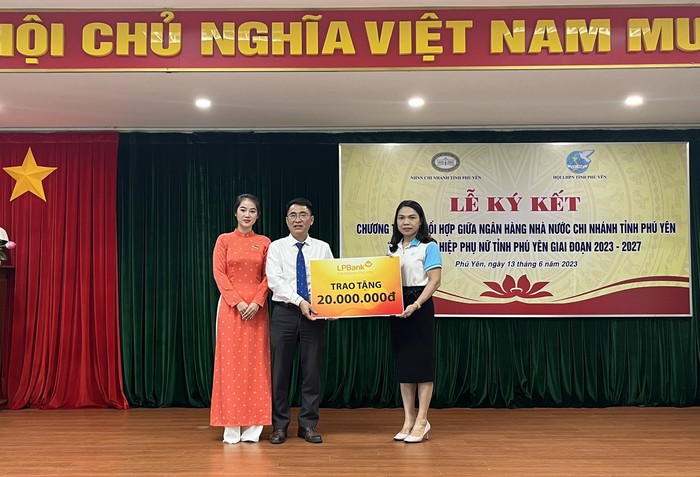 Dịp này, Ngân hàng NN&PTNT chi nhánh Phú Yên và Ngân hàng TMCP Bưu Điện Liên Việt chi nhánh Phú Yên trao 40 triệu đồng (mỗi đơn vị 20 triệu đồng) hỗ trợ phụ nữ khó khăn trên địa bàn tỉnh.