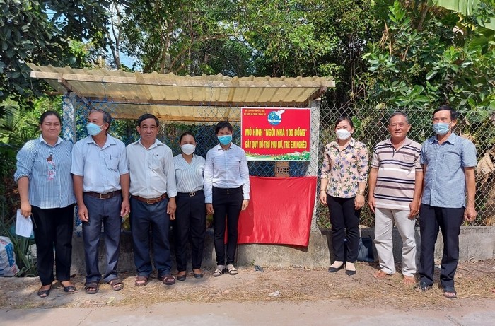 Chào mừng Đại hội đại biểu phụ nữ toàn quốc lần thứ XIII, Hội LHPN xã Trung Thành Tây, huyện Vũng Liêm, tỉnh Vĩnh Long tổ chức ra mắt mô hình “Ngôi nhà 100 đồng” tại ấp Tân Trung.