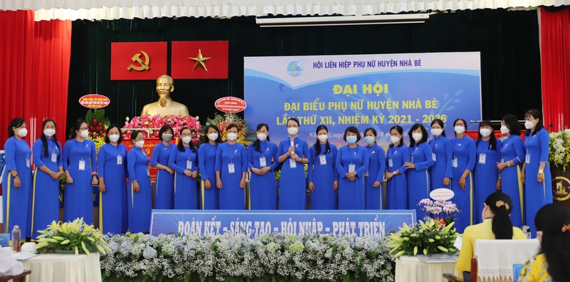 BCH Hội LHPN huyện Nhà Bè khóa XII, nhiệm kỳ 2021-2026, ra mắt tại đại hội.