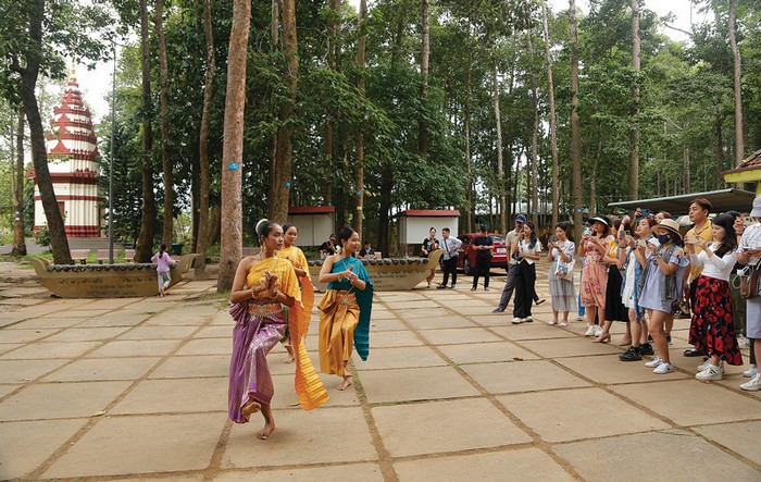Trình diễn nghệ thuật múa dân gian phục vụ khách tham quan tại Bảo tàng Văn hóa dân tộc Khmer tỉnh Trà Vinh. Đây cũng là vùng văn hóa Khmer đậm đặc nhất khi có 143 ngôi chùa Phật giáo Nam tông Khmer, cùng với đó là hệ thống ngôn ngữ, chữ viết, kho tàng văn nghệ dân gian được bảo tồn và kế thừa qua các thế hệ. Nguồn tài nguyên văn hóa bản địa đặc sắc này chính là nền tảng để Trà Vinh tạo ra những sản phẩm du lịch độc đáo, hấp dẫn, mang thương hiệu riêng.