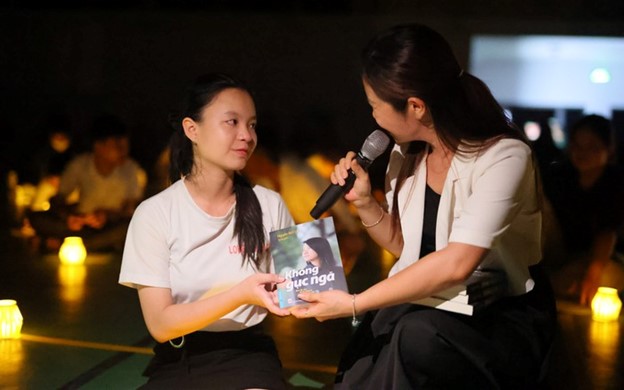 Tối 7/6, một trong những hoạt động ý nghĩa của chương trình trại hè "Hoa hướng dương" là buổi chia sẻ cảm xúc của các cặp mẹ con tham gia chương trình. Trong ánh nến lung linh, hàng trăm bức thư với tất cả những lời biết ơn, những nỗi niềm yêu thương được các con viết ra gửi đến mẹ đỡ đầu của mình. Đối với nhiều con, tình yêu thương của mẹ đỡ đầu đã xoa dịu những vết thương, đọng lại những hạnh phúc đong đầy.