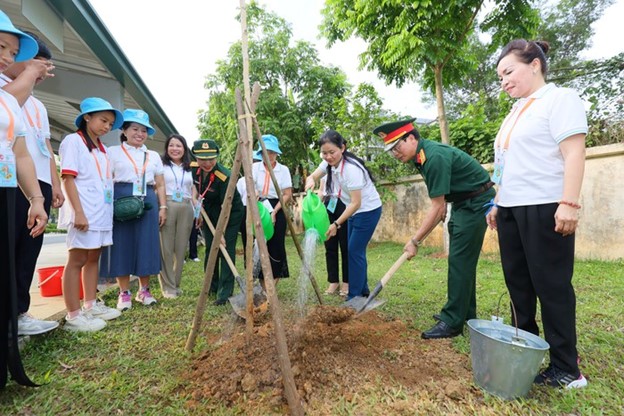 Trong chiều cùng ngày, Ủy viên dự khuyết TƯ Đảng, Phó Chủ tịch Hội LHPN Việt Nam Tôn Ngọc Hạnh cùng đại diện lãnh đạo Tổng cục Chính trị Quân đội Nhân dân Việt Nam và các cặp mẹ con đã trồng cây lưu niệm tại Trung tâm huấn luyện Viettel - Địa điểm chính tổ chức trại hè "Hoa hướng dương 2023".