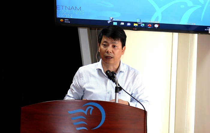 Đồng chí Trần Quang Tiến, Giám đốc Học viện Phụ nữ Việt Nam tham luận tại Hội nghị