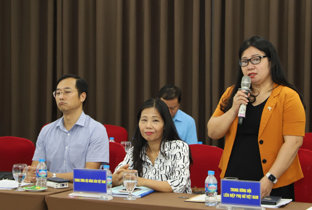 Bà Hoàng Anh Thơ - Phó Chánh Văn phòng TƯ Hội LHPN Việt Nam đề xuất ý kiến tại hội nghị