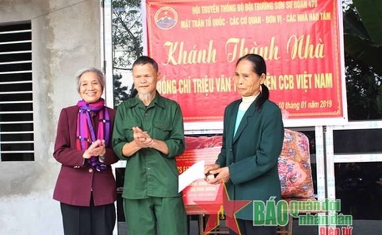 CCB Trần Thị Thục Oanh (ngoài cùng, bên trái) tặng quà đồng đội có hoàn cảnh khó khăn tại Đại Từ, Thái Nguyên, tháng 1-2019.