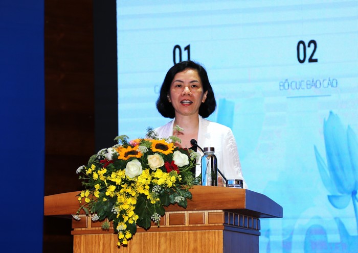 Phó Chủ tịch Hội LHPN Việt Nam Nguyễn Thị Minh Hương trình bày tại hội nghị