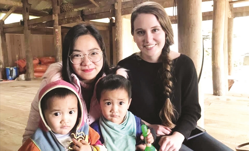 Sùng Mỹ Yên kết nối với các tình nguyện viên người nước ngoài dạy tiếng Anh cho trẻ em Mông tại Mèo Vạc. Học để thay đổi cuộc sống