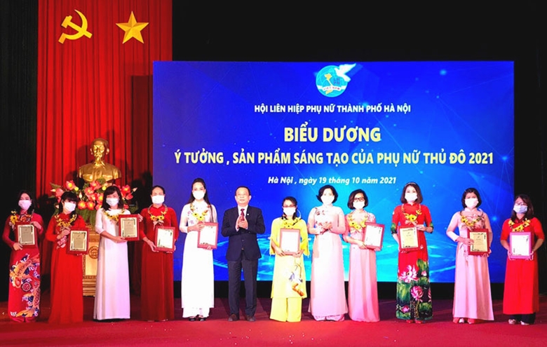 Hội LHPN thành phố Hà Nội cũng trao thưởng cho 10 sản phẩm, ý tưởng sáng tạo của phụ nữ Thủ đô. Bằng lao động cần cù, sáng tạo, kết hợp với khoa học kỹ thuật và công nghệ hiện đại và bàn tay khéo léo của chị em đã tạo ra những sản phẩm an toàn, thân thiện với môi trường, có giá trị kinh tế cao, có giá trị thiết thực, khẳng định tiềm năng to lớn trên lĩnh vực phát triển kinh tế của phụ nữ Thủ đô.