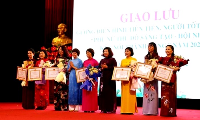 Tại chương trình, các gương điển hình tiên tiến phụ nữ Thủ đô đã giao lưu, chia sẻ những công việc, kinh nghiệm của mình với đông đảo đại biểu tham dự.