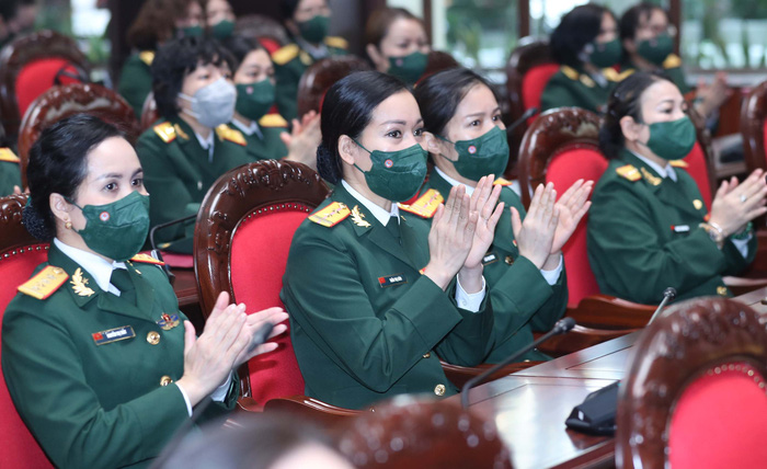 Phát biểu tại buổi lễ, Chủ nhiệm Tổng cục Chính trị khẳng định: Là một bộ phận của phụ nữ Việt Nam, phụ nữ quân đội không chỉ có đầy đủ những phẩm chất tốt đẹp mà còn có điều kiện thuận lợi để phát huy, làm tỏa sáng thêm những phẩm chất đó trong lĩnh vực, hoạt động đặc thù quân sự. Những năm qua, phụ nữ quân đội đã có đóng góp tích cực, to lớn trên rất nhiều các nội dung, nhiệm vụ, lĩnh vực công tác như: Nghiên cứu khoa học; giảng dạy; quân y; báo chí; phòng chống thiên tai, bão lũ, dịch bệnh; văn hóa nghệ thuật; thể dục thể thao; tham gia hoạt động gìn giữ hòa bình Liên hợp quốc...