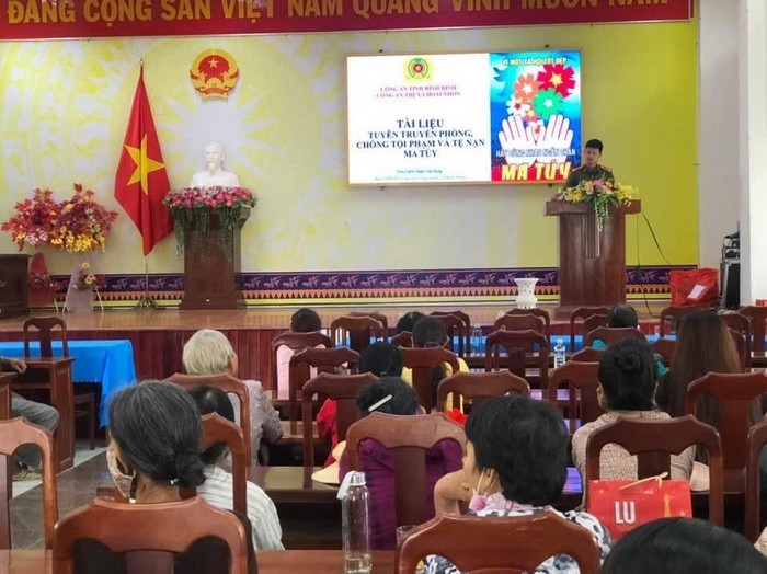 Cán bộ công an thị xã Hoài Nhơn tuyền truyền về tác hại của ma túy
