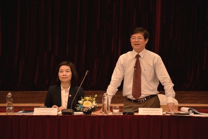 TS Nguyễn Thị Mai Hoa (thứ hai phải ảnh) tham gia hội thảo và đóng góp 3 nhóm giải pháp nhằm giải phóng, tạo điều kiện và hỗ trợ phụ nữ