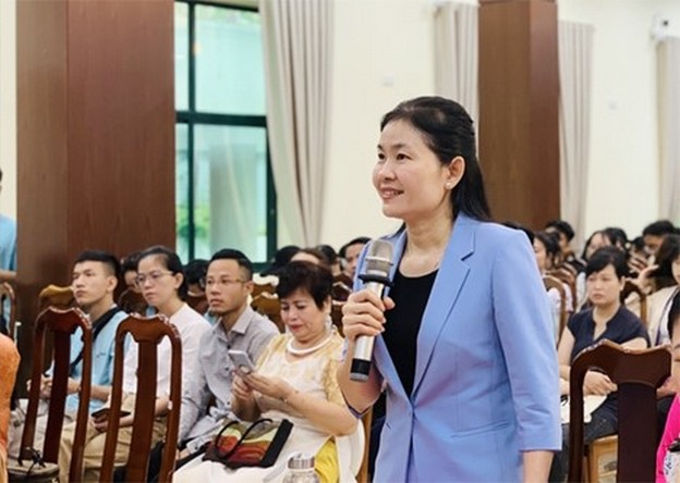 Bà Nguyễn Thị Tuyết - Giám đốc Bảo tàng Phụ nữ Việt Nam phát biểu tại Tọa đàm