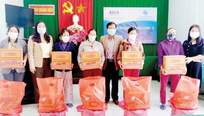 Hội LHPN tỉnh vừa thực hiện chương trình “Chung tay phòng, chống dịch COVID-19”, trao 736 suất quà là các nhu yếu phẩm thiết yếu với tổng giá trị 736 triệu đồng cho hội viên mất việc làm, giảm thu nhập do dịch bệnh. Đồng thời, trao thiết bị học online cho các em học sinh vùng sâu, vùng xa.