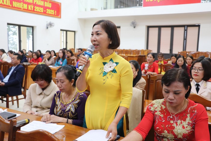 Đại diện cán bộ, hội viên, phụ nữ nêu ý kiến tại Hội nghị đối thoại giữa lãnh đạo tỉnh với phụ nữ tỉnh năm 2023