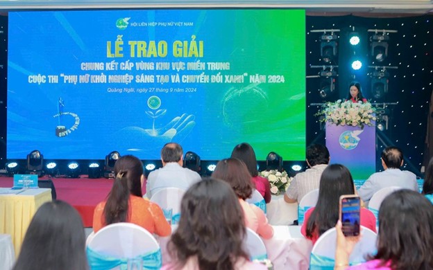 Tiến sỹ Trần Lan Phương, Phó Chủ tịch Hội Liên hiệp Phụ nữ Việt Nam - Trưởng ban Tổ chức cuộc thi, phát biểu khai mạc Lễ trao giải Chung kết Cuộc thi Phụ nữ khởi nghiệp cấp vùng, khu vực Miền Trung năm 2024 Phụ nữ khởi nghiệp sáng tạo và chuyển đổi xanh là chủ đề Cuộc thi Phụ nữ khởi nghiệp năm 2024 được Hội LHPN Việt Nam lựa chọn, với mong muốn phát động, lan tỏa và tìm kiếm, tôn vinh các doanh nghiệp, hợp tác xã, tổ hợp tác, hộ kinh doanh do phụ nữ làm chủ hoặc tham gia quản lý có Dự án khởi nghiệp với sáng kiến theo hướng kinh tế tuần hoàn, kinh tế xanh và kinh tế số, các dự án tạo ra các sản phẩm an toàn, thân thiện với môi trường và giá trị thực tiễn cho cộng đồng. Qua đó ghi nhận, cổ vũ phụ nữ cả nước tích cực hưởng ứng và tham gia hiệu quả vào Chiến lược quốc gia về tăng trưởng xanh, cũng như góp phần thực hiện cam kết mục tiêu phát thải ròng bằng không vào năm 2050 của Chính phủ Việt Nam tại COP 26.