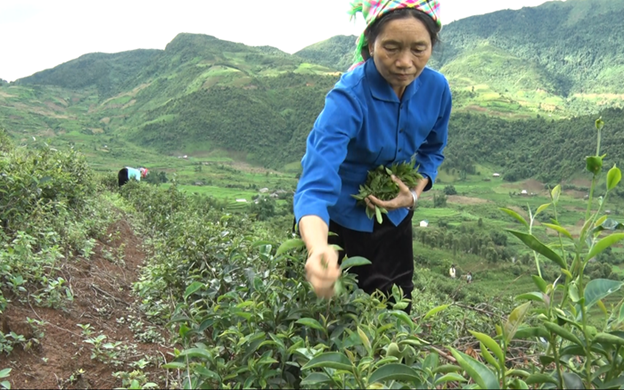 Người dân Tà Mung thu hái chè Hiệu quả từ cây chè ở vùng cao