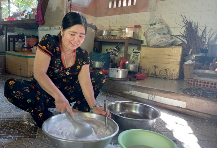 Cô Dương Thị Khuyên chuẩn bị làm thức ăn để đãi tiệc