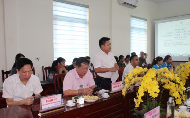 Ông Nguyễn Hồng Sơn (đứng)- Giám đốc Trung tâm hỗ trợ kinh tế tập thể (Liên minh hợp tác xã tỉnh Phú Thọ)