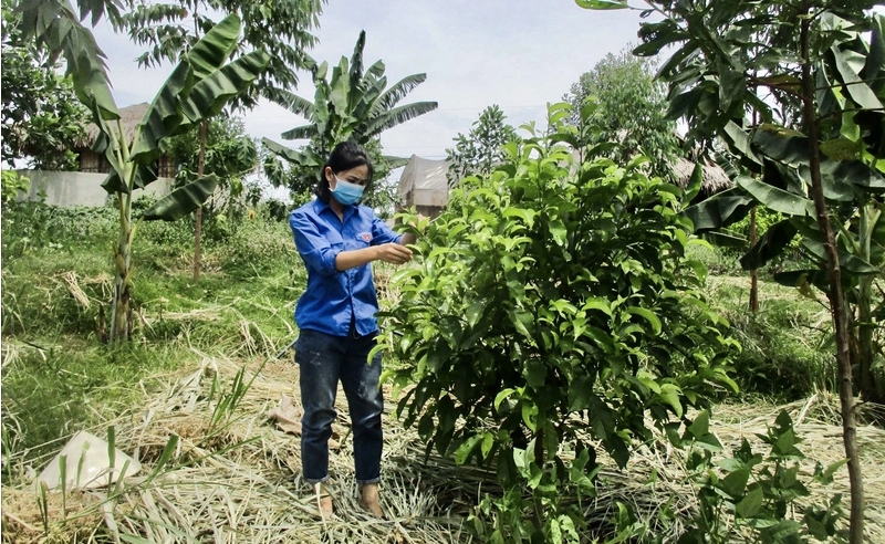 Nguyễn Lê Ngọc Linh chăm cây tại "Vườn rừng Bản thổ"