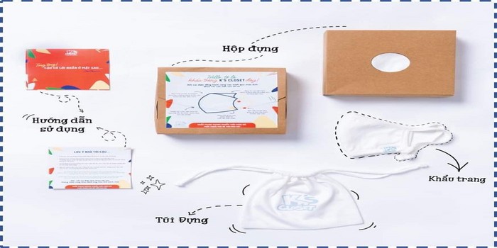 Điều chị Yến tâm đắc nhất, cũng là điểm độc đáo của chiếc khẩu trang K's closet là trên khẩu trang có ô ghi tên để ba mẹ ghi tên bé, tránh nhầm lẫn khẩu trang với các bạn. Kèm theo  khẩu trang là chiếc túi đựng kháng khuẩn, để bé có thể đựng khẩu trang thay thế trong ngày khi đi học.