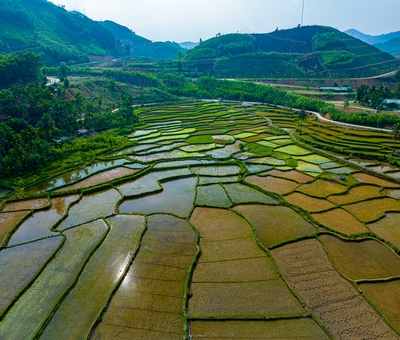 Đến "cổng trời" An Toàn, hiện ra trước mắt là những sóng lúa bậc thang tuyệt đẹp.