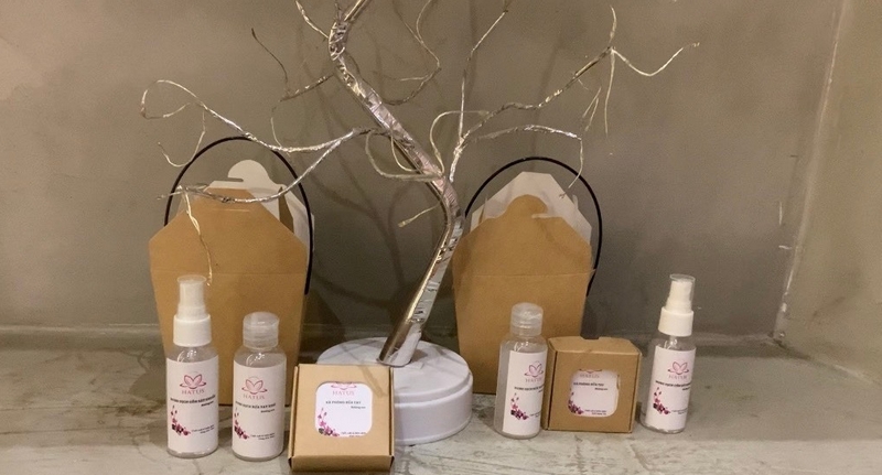 Bộ sản phẩm khử khuẩn từ sen do Mai Hương sáng chế.