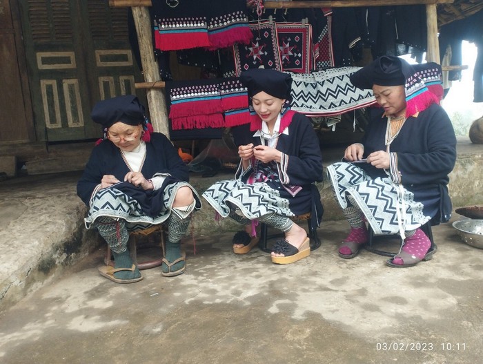 Chị Hằng chia sẻ: "Là nơi sinh sống tập trung của người Dao Tiền, xóm Sưng có cảnh quan thiên nhiên hoang sơ và nét văn hóa độc đáo, tinh thần đoàn kết. Năm 2017, xóm được lựa chọn triển khai mô hình du lịch cộng đồng (DLCĐ). Bình quân mỗi năm, điểm DLCĐ xóm Sưng tiếp đón trên 2.000 lượt du khách đến thăm quan, tìm hiểu và trải nghiệm, trong đó du khách quốc tế chiếm trên 90%. Tận dụng những tiềm năng, lợi thế sẵn có, với sự hỗ trợ giúp đỡ của cấp ủy, chính quyền địa phương, Hội phụ nữ, Đoàn thanh niên xã, chúng tôi thành lập Tổ hợp tác (THT) sản phẩm thổ cẩm xóm Sưng vào năm 2019 với mục đích bảo tồn và phát huy nghề truyền thống. Vừa quảng bá, giới thiệu với du khách về những tinh hoa thổ cẩm của đồng bào dân tộc Dao Tiền, vừa giúp người dân trên địa bàn nâng cao thu nhập từ phát triển DLCĐ, cải thiện chất lượng cuộc sống”.