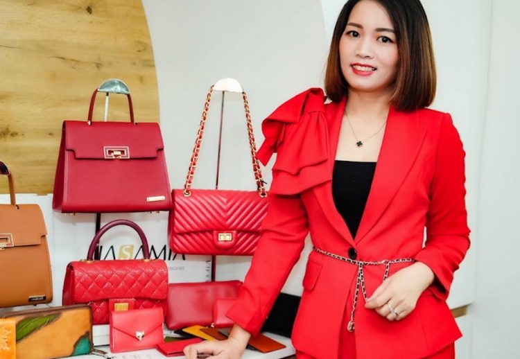 Gian hàng giới thiệu sản phẩm của phụ nữ khởi nghiệp tỉnh Hà Giang "Công ty chúng tôi chuyên cung cấp các sản phẩm túi xách thời trang, phụ kiện, quà tặng cho doanh nghiệp trong và ngoài nước. Trước dịch Covid-19, các hoạt động sản xuất của công ty luôn ổn định với đơn đặt hàng và tái sản xuất cao. Chúng tôi không chỉ có doanh thu từ các đơn hàng doanh nghiệp mà khách hàng cá nhân cũng có nhu cầu mua sắm thường xuyên. Đặc biệt vào các dịp lễ, tết, tri ân họ sẵn sàng lựa chọn quà tặng mà không quá đắn đo về chi phí, giá cả. Nhân sự và các hoạt động doanh nghiệp vì thế ổn định.