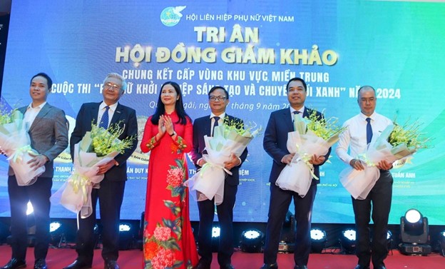 Sáng 27/9, Lễ trao giải Cuộc thi "Phụ nữ khởi nghiệp sáng tạo và chuyển đổi xanh" năm 2024 cấp Vùng miền Trung được Hội LHPN Việt Nam tổ chức tại tỉnh Quảng Ngãi, vinh danh và trao thưởng cho các Dự án khởi nghiệp xuất sắc.