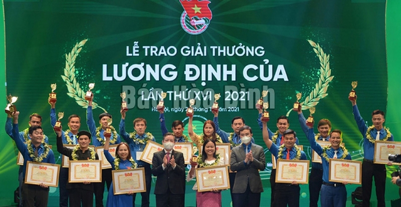 Trịnh Thị Thanh Hòa (mặc áo vàng ở giữa ảnh) vinh dự nhận giải thưởng Lương Định Của năm 2021.