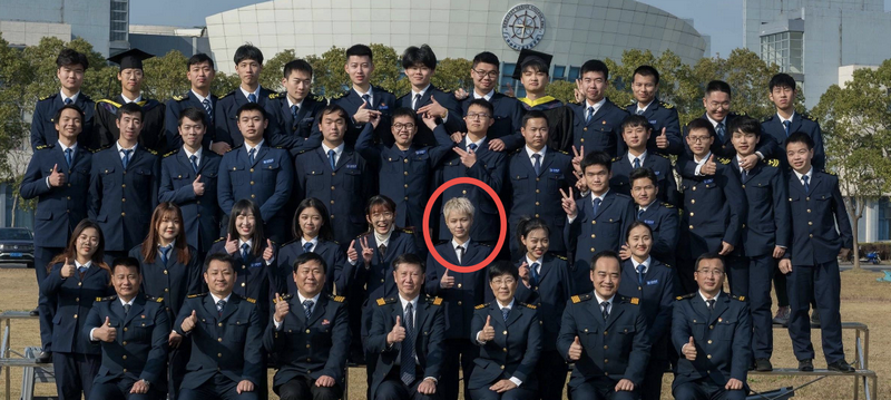 Manju với màu tóc màu vàng nổi bật trong ảnh chụp tốt nghiệp tại trường ĐH Hàng hải Thượng Hải