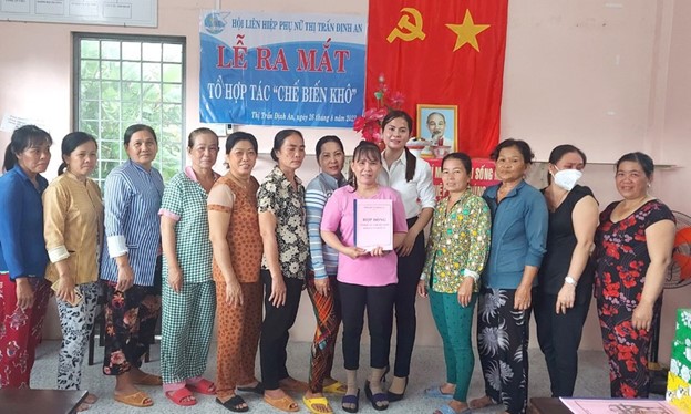 Nhằm góp phần giải quyết việc làm cho chị em phụ nữ, nhất là với phụ nữ lớn tuổi, phụ nữ Khmer, Hội LHPN thị trấn cũng thành lập tổ hợp tác chế biến khô.