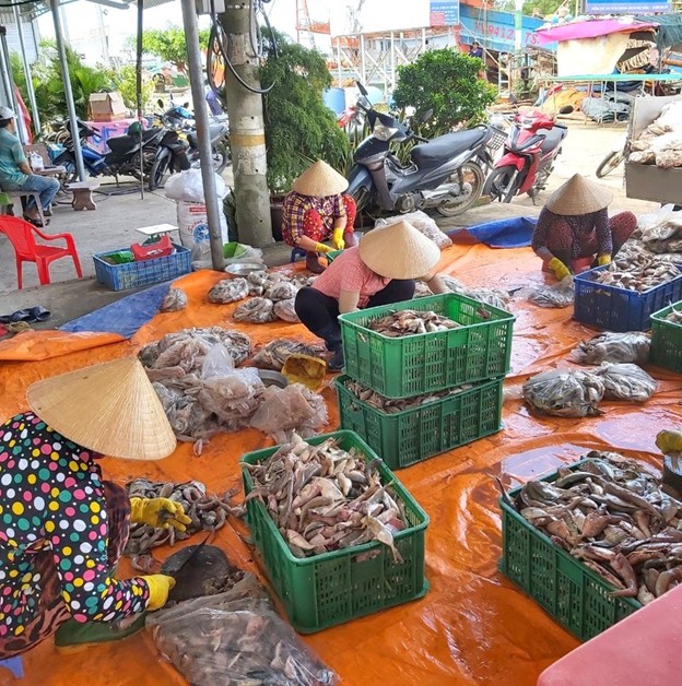 Hội viên, phụ nữ làm việc tại cảng cá với thu nhập khoảng 200.000-300.000 đồng/ngày