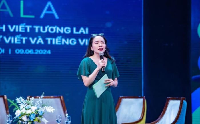 Phan Thùy Trang phát biểu trong chương trình Gala Hành trình viết tương lai - Tình yêu chữ Viết và Tiếng Việt