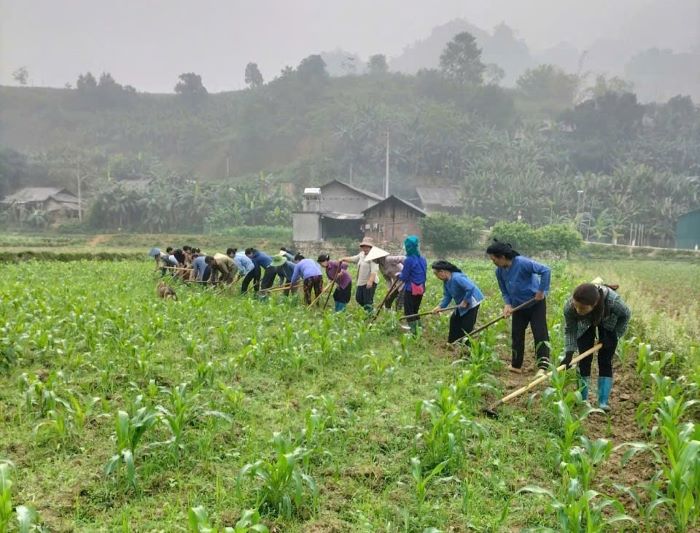 Chi hội phụ nữ xóm Bản Chang, xã Phan Thanh đóng góp ngày công hỗ trợ hội viên ốm đau vun ngô, ổn định sản xuất