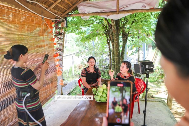 Phụ nữ Ca Dong xã Sơn Long tự tin livestream bán hàng qua mạng xã hội, mở rộng đầu ra cho sản phẩm ổi rubi ruột đỏ Chị Đinh Thị Hạ, thành viên Tổ hợp tác Nông nghiệp sạch xã Sơn Long (huyện Sơn Tây - tỉnh Quảng Ngãi), cho biết: Tổ hợp tác được thành lập thứ giữa năm 2023 với 15 thành viên là chị em phụ nữ người dân tộc Ca Dong tại Xã Sơn Long. Đây là địa bàn miền núi, vùng sâu vùng xa của tỉnh Quảng Ngãi, tập trung đông người dân tộc thiểu số. Đời sống phụ nữ dân tộc thiểu số nơi đây chủ yếu trông vào nông nghiệp - lâm nghiệp, trồng cây keo, cây cau, cây mì nhưng những thường giá cả không ổn định.
