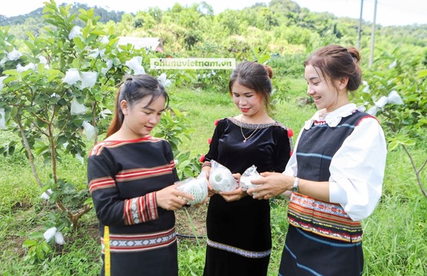 Chị Đinh Thị Hạnh, người Ca Dong, thành viên của Tổ hợp tác, cho biết: Thời gian qua, phụ nữ nơi đây tập trung trồng cây ổi rubi ruột đỏ. Đây là giống ổi mới được đưa về Sơn Long, rất hợp với khí hậu, thổ nhưỡng nơi đây, nên ra trái rất đẹp, ruột đỏ tươi, ăn ngọt và giòn.