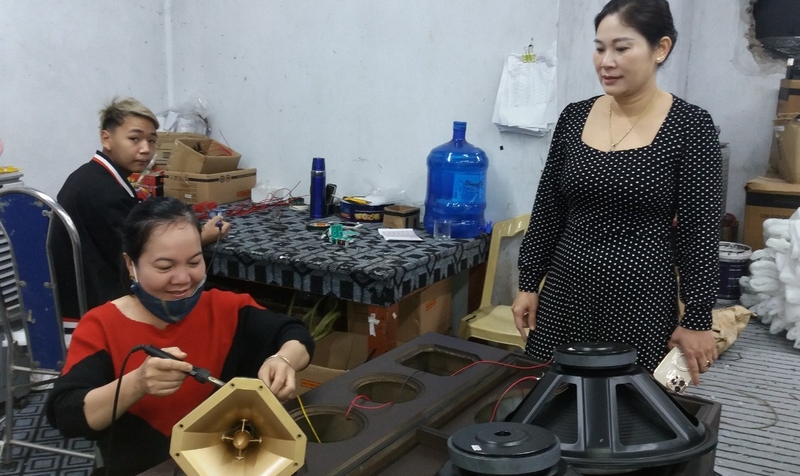 "Công ty của tôi hiện có 150 lao động làm ở các xưởng sản xuất, gia công các công đoạn như xưởng mộc làm vỏ cho những chiếc loa, xưởng lắp ráp loa, xưởng sơn màu loa tuỳ theo sở thích của khách hàng… Trong đó, có 50 lao động là phụ nữ với mức thu nhập ổn định từ 5,5-6,5 triệu đồng/người/tháng" - chị Bình cho biết.