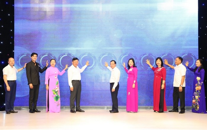 Đồng chí Lại Thế Nguyên, Phó Bí thư Thường trực Tỉnh ủy, Trưởng Đoàn ĐBQH tỉnh cùng các đại biểu thực hiện nghi thức khai mạc “Ngày phụ nữ sáng tạo - khởi nghiệp” năm 2023