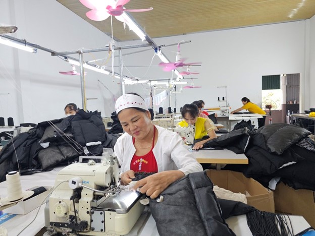 Theo chị Thúy, Tổ sản xuất sản phẩm may chuyên quần áo mặc nhà, áo khoác, áo chống nắng, áo gió… Mùa hè, khi học sinh nghỉ học thì chị em có thể đi làm được đông đủ hơn và nhiều thời gian hơn nên thu nhập cũng cao hơn. Trung bình tiền công từ 5-10 triệu đồng/tháng. Đây là khoản thu nhập khá tốt đối với chị em tại địa phương.