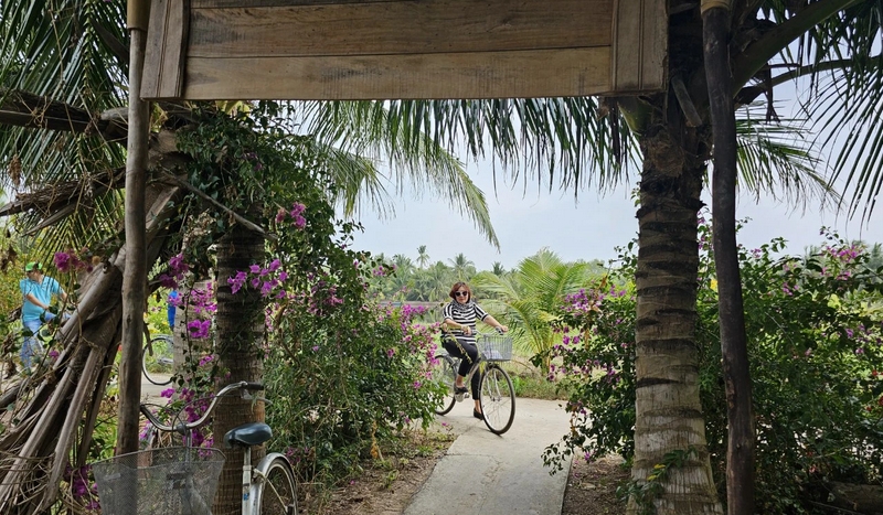 Du khách có thể đi bộ, đi xe đạp để khám phả vẻ đẹp bình dị của Cồn Chim