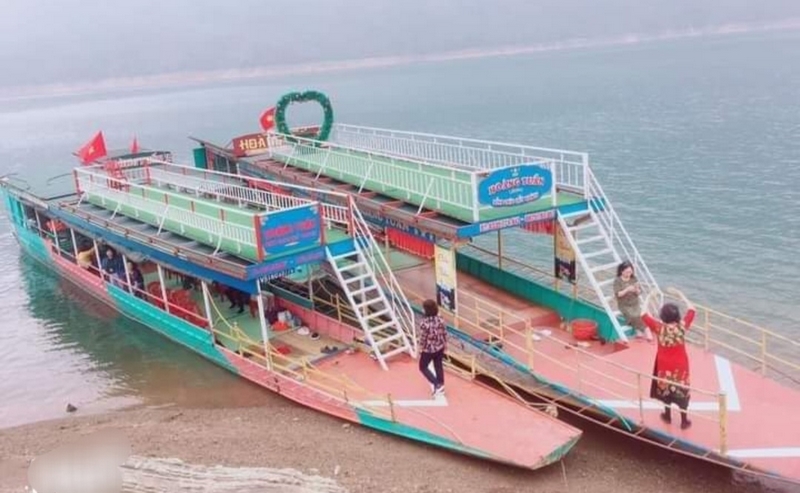 Thuyền du lịch của nhà bà Triệu Thị Xướng chuyên phục vụ du khách đi thăm quan hồ thủy điện