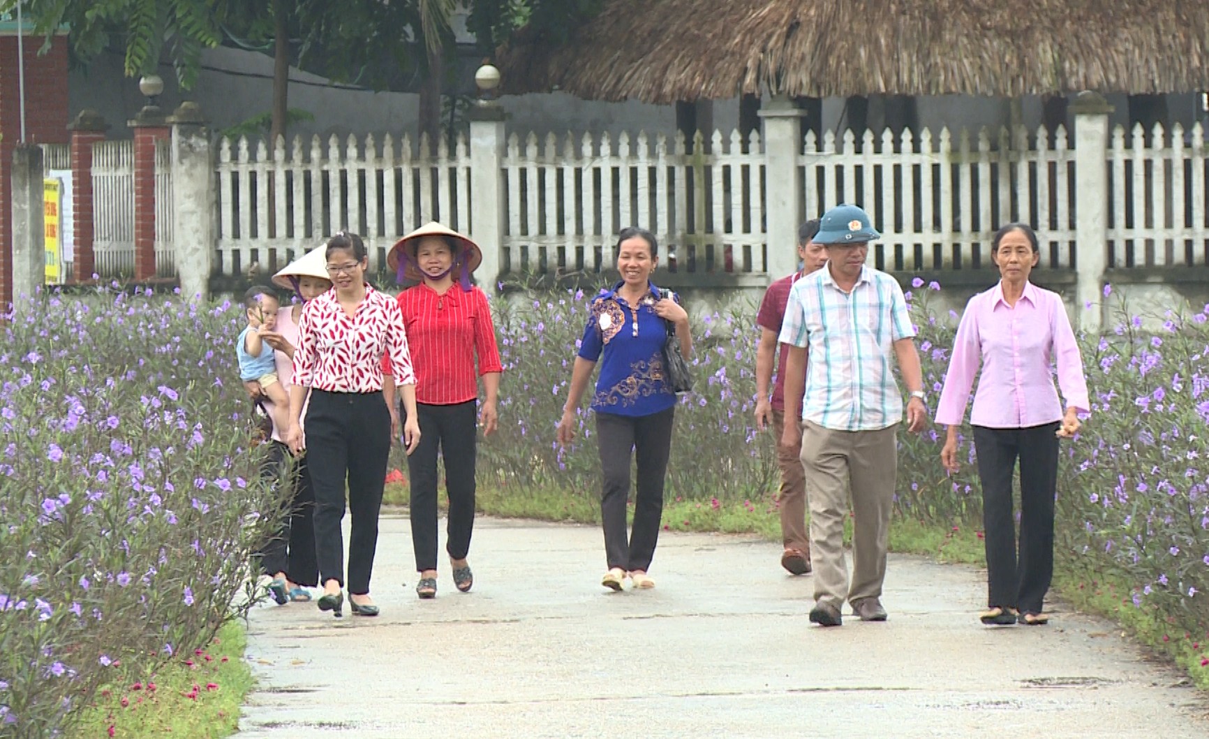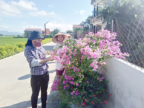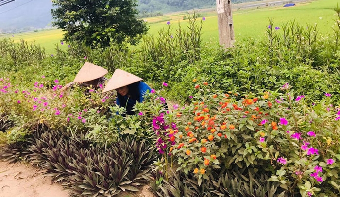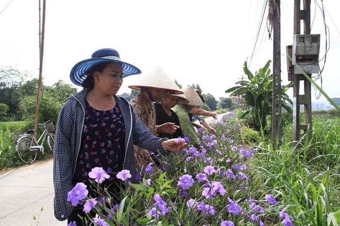 Những con đường bê tông rộng rãi được tô điểm bởi muôn vạn bông hoa đang đua nở; xóm làng phong quang, sạch sẽ… được tạo nên từ bàn tay cần mẫn, khéo léo của hội viên Hội LHPN xã Vân Trục. -