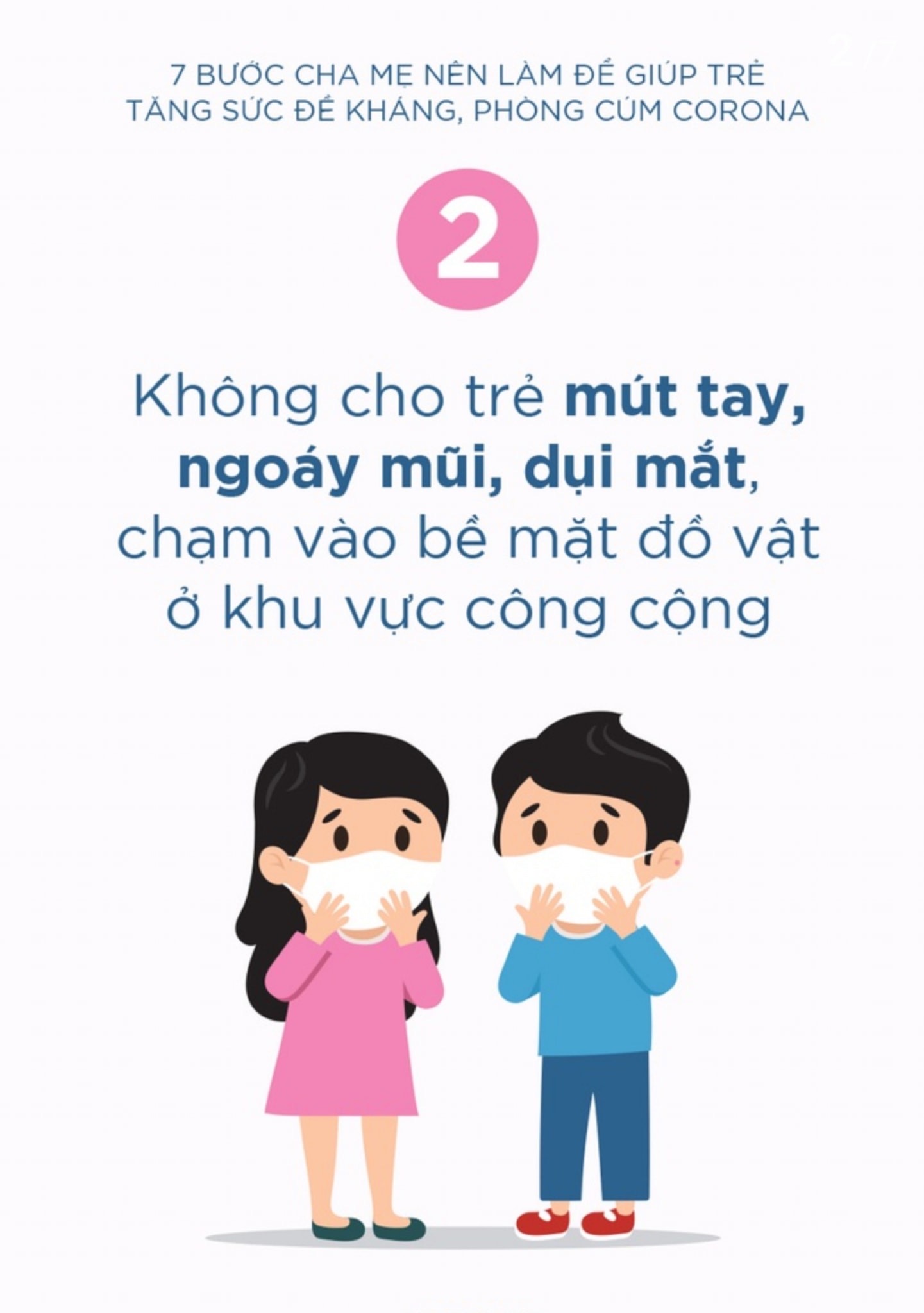 Bước 2- Không cho trẻ mút tay, ngoáy mũi, dụi mắt, chạm vào bề mặt đồ vật ở khu vực công cộng