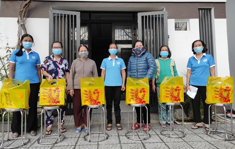 Tặng quà cho hội viên nghèo của Hội LHPN phường Hòa Minh được trích từ kinh phí bán rác thải nhựa